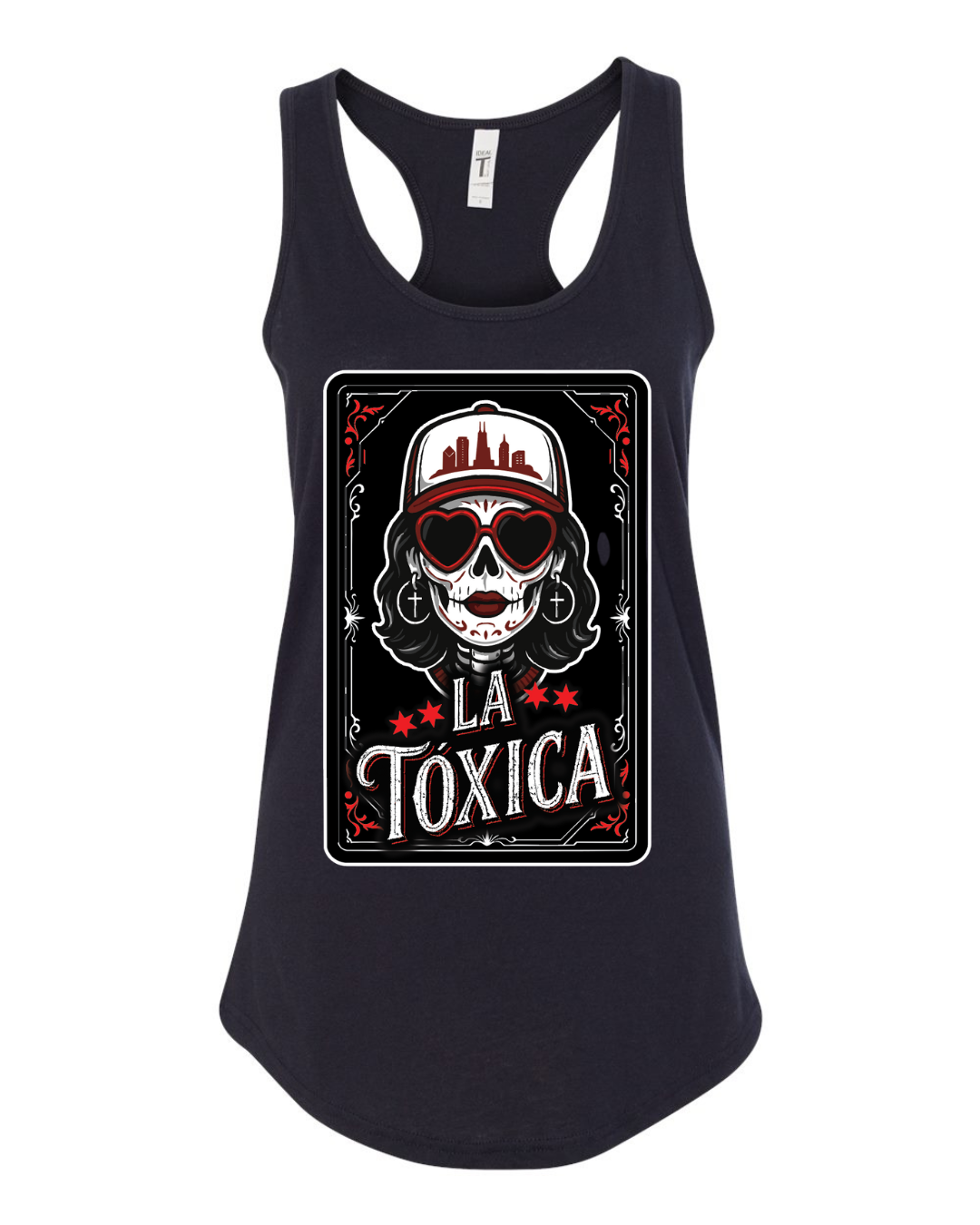 La Tóxica is that one tía, ex, or amiga we all know—bold, unbothered, and always the center of attention. This calavera-inspired design channels unapologetic Latina energy with a side of “don’t test me.” Rock it solo or match with your favorite Tóxico—either way, it’s giving main character vibes.